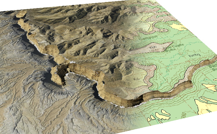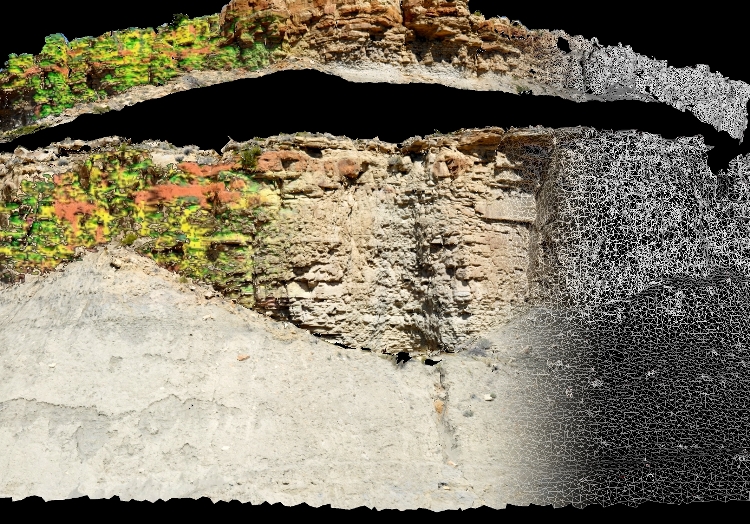 Processed hyperspectral image textured onto photorealistic lidar model. Lines from remote sensing image classification
