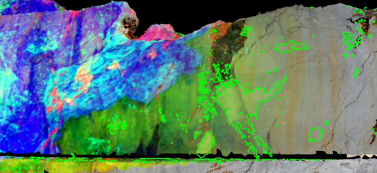 Hyperspectral classification added as new texture layer to 3D outcrop model.