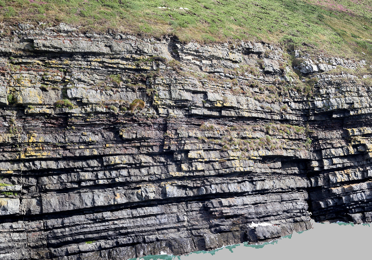 Digital outcrop model acquired using photogrammetry, with texture contrast enhanced from image capture conditions (Data from SAFARI).